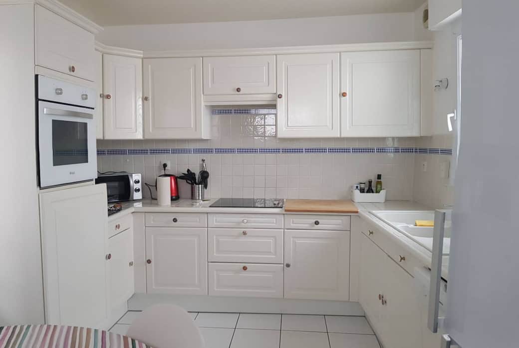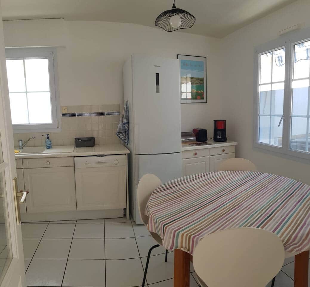 La cuisine est séparée, aménagée et équipée d'un réfrigérateur/congélateur, d'une plaque de cuisson, lave vaisselle, four traditionnel, four micro-ondes, cafetière traditionnelle, bouilloire et grille-pain.