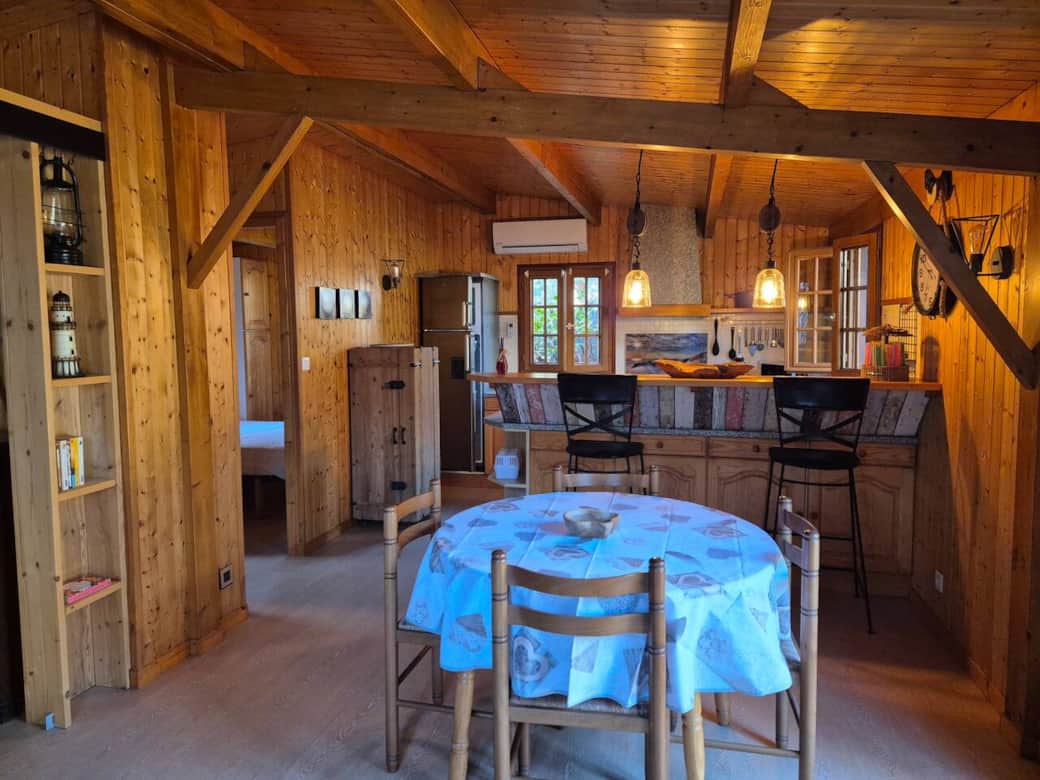Laissez votre voiture, venez profiter de ce chalet avec climatisation sur parcelle privée permettant de tout faire à pied : ballade en forêt, plage, courses, cinéma, restaurants...