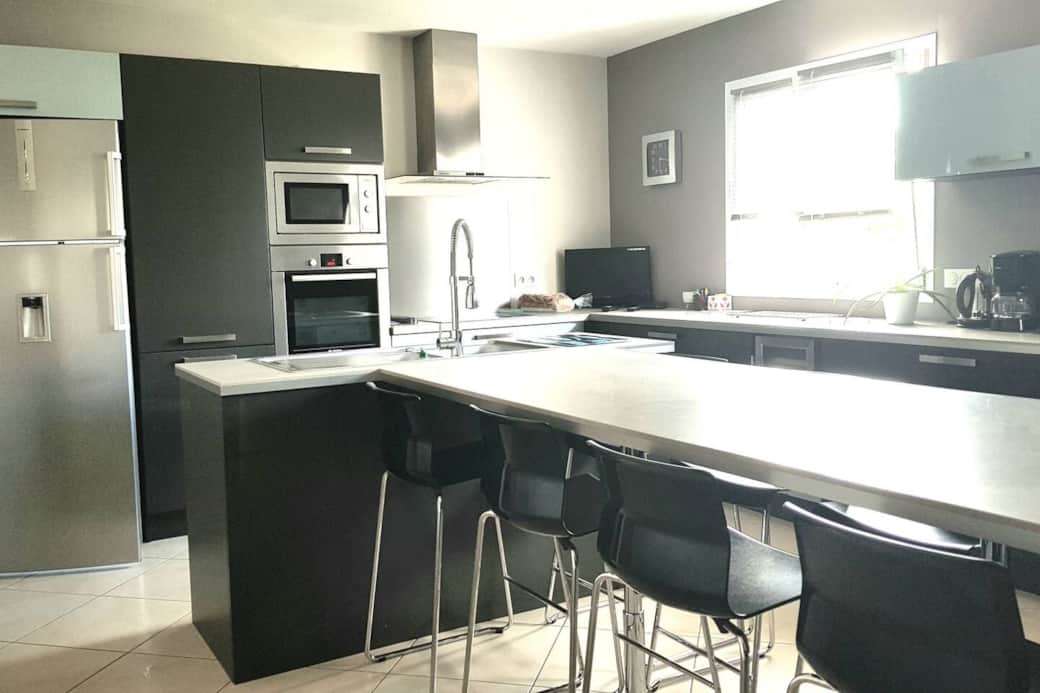 La cuisine récente est équipée d'une plaque de cuisson, hotte, grand réfrigérateur avec une partie congélateur, four, four à micro-ondes, lave-vaisselle, une cafetière, bouilloire... et bien entendu, toute la vaisselle nécessaire à votre séjour.